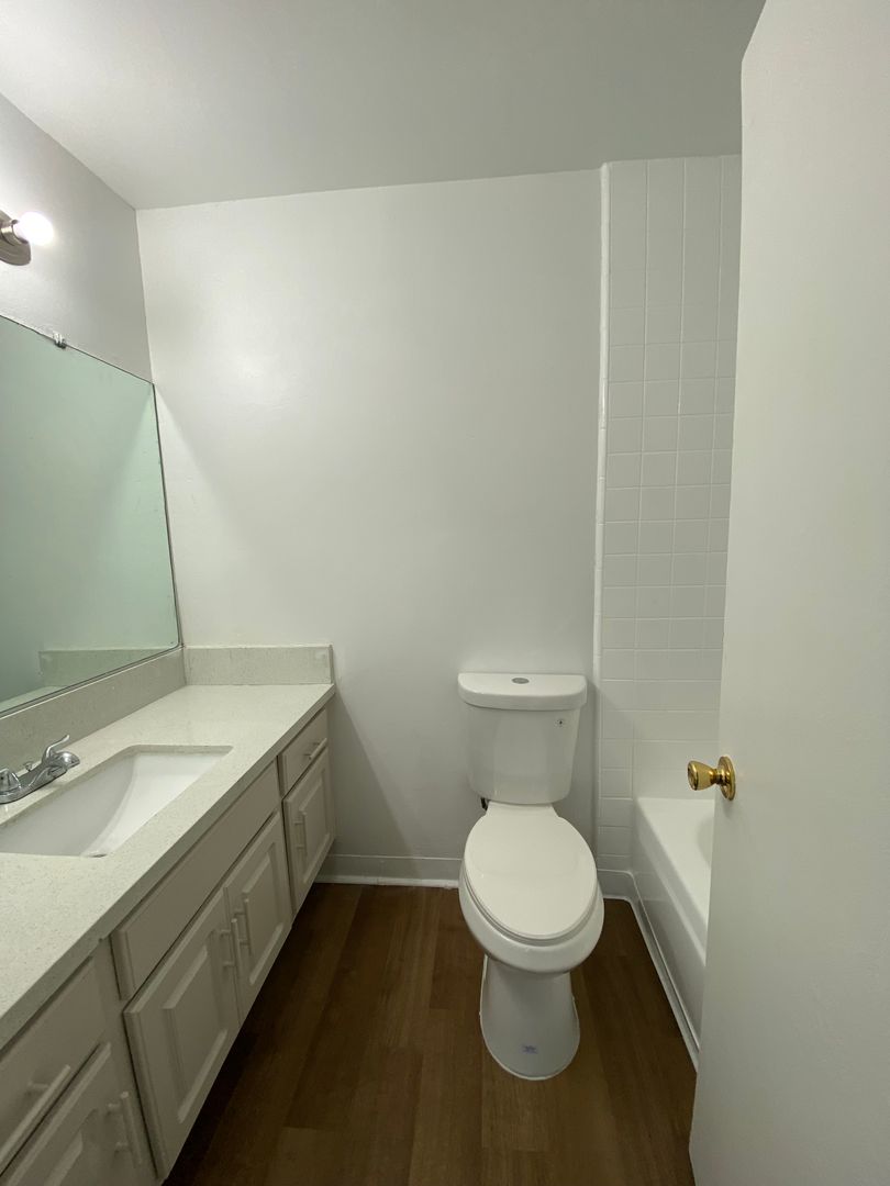 - Modern bathroom with a refinished bathtub for a relaxing experience.